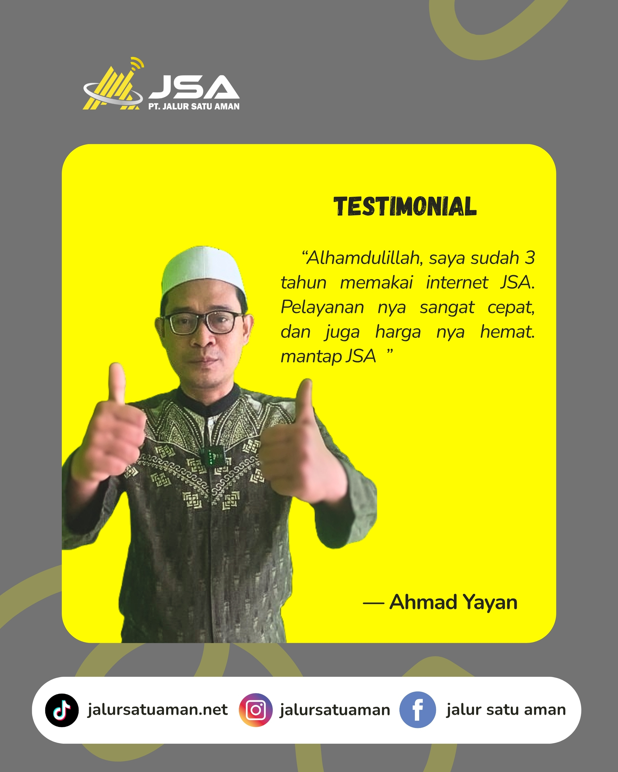 Mendengarkan pengalaman pelanggan adalah prioritas kami. Berikut adalah beberapa feedback dari pengguna layanan JSA Internet yang merasakan kualitas koneksi cepat, stabil, dan terpercaya.